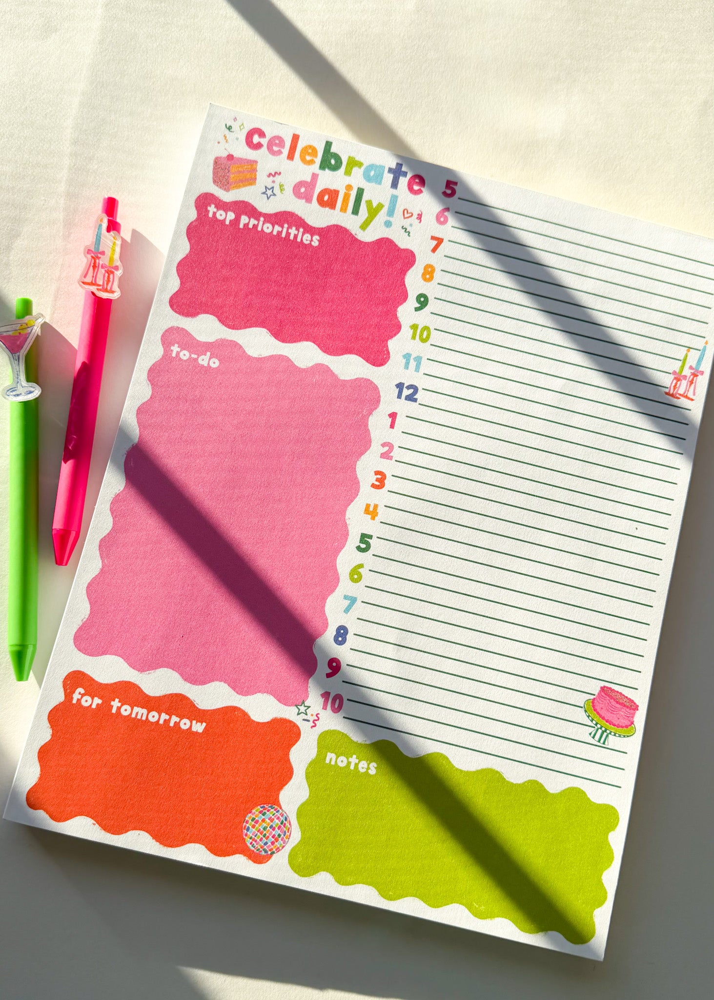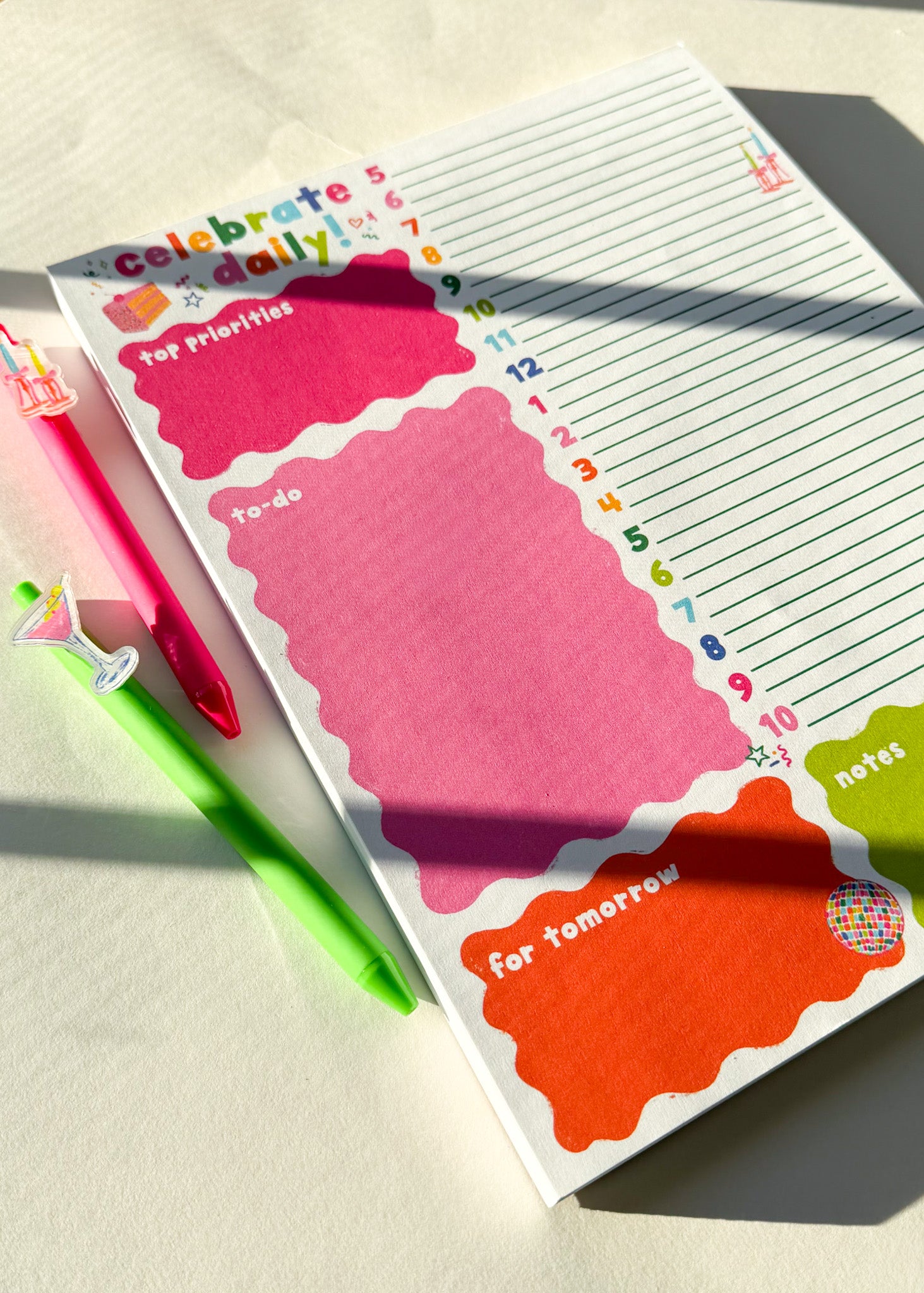 Plan each day with this colorful notepad covered in hand drawn ard confetti, fun little ard icons, and bright colors!!