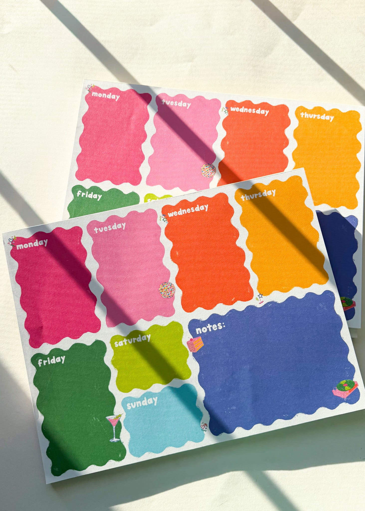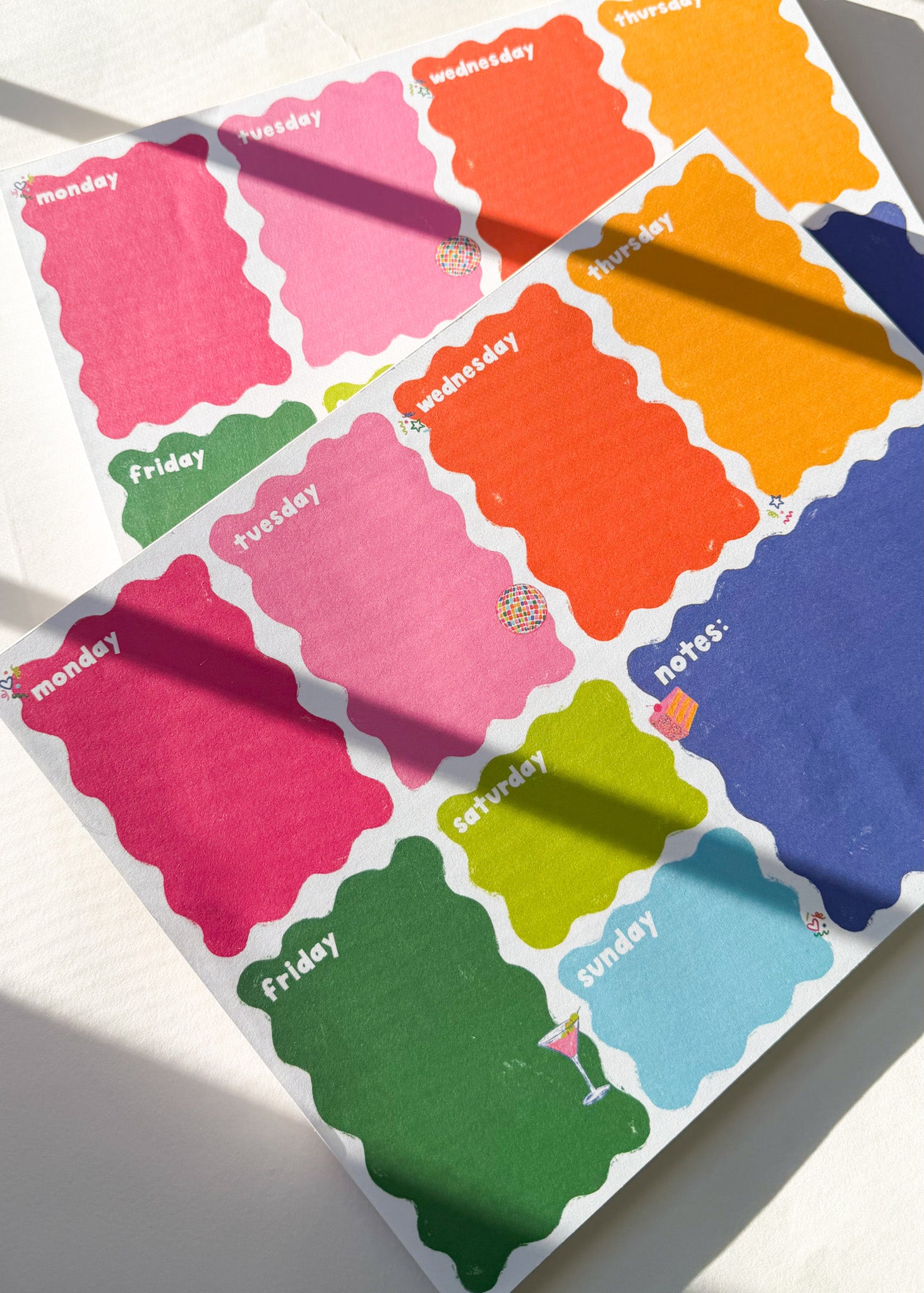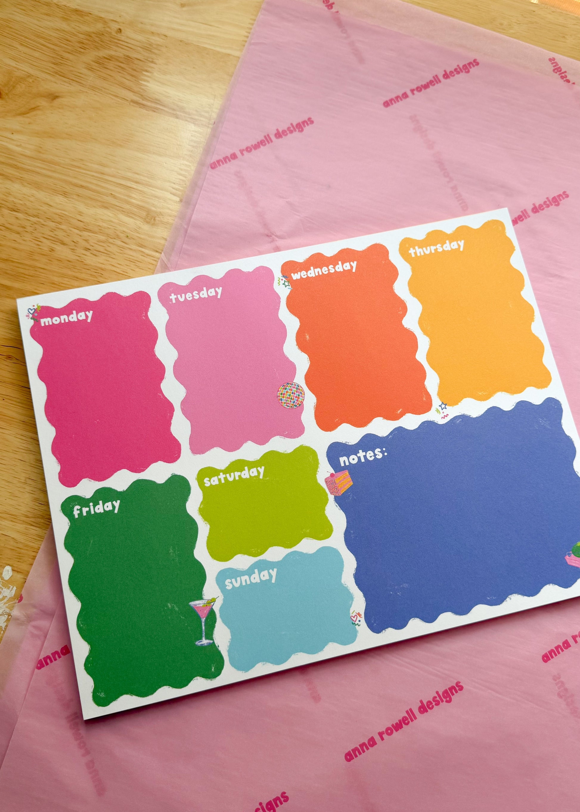 Plan each day with this colorful notepad covered in hand drawn ard confetti, fun little ard icons, and bright colors!!